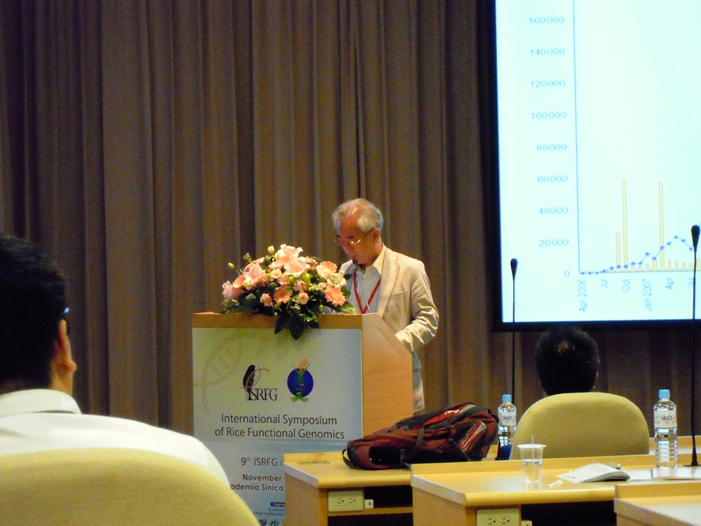 The Eighth Rice Annotation Project Meeting (RAP8) was held in Taipei, Taiwan on November 9th, 2011, as a workshop of 9th International Symposium on Rice Functional Genomics. In this year, a unified Oryza sativa (japonica group, cv. Nipponbare) genome, Os-Nipponbare-Reference-IRGSP-1.0, was created in collaboration with MSU's rice annotation group and an overview of this assembly was presented by Dr. Takuji Sasaki, a former co-chair of the International Rice Genome Sequencing Project. In addition, to cope with emerging massive data generated by next-generation sequence technologies, a new browser for genome-wide sequencing data was introduced. |